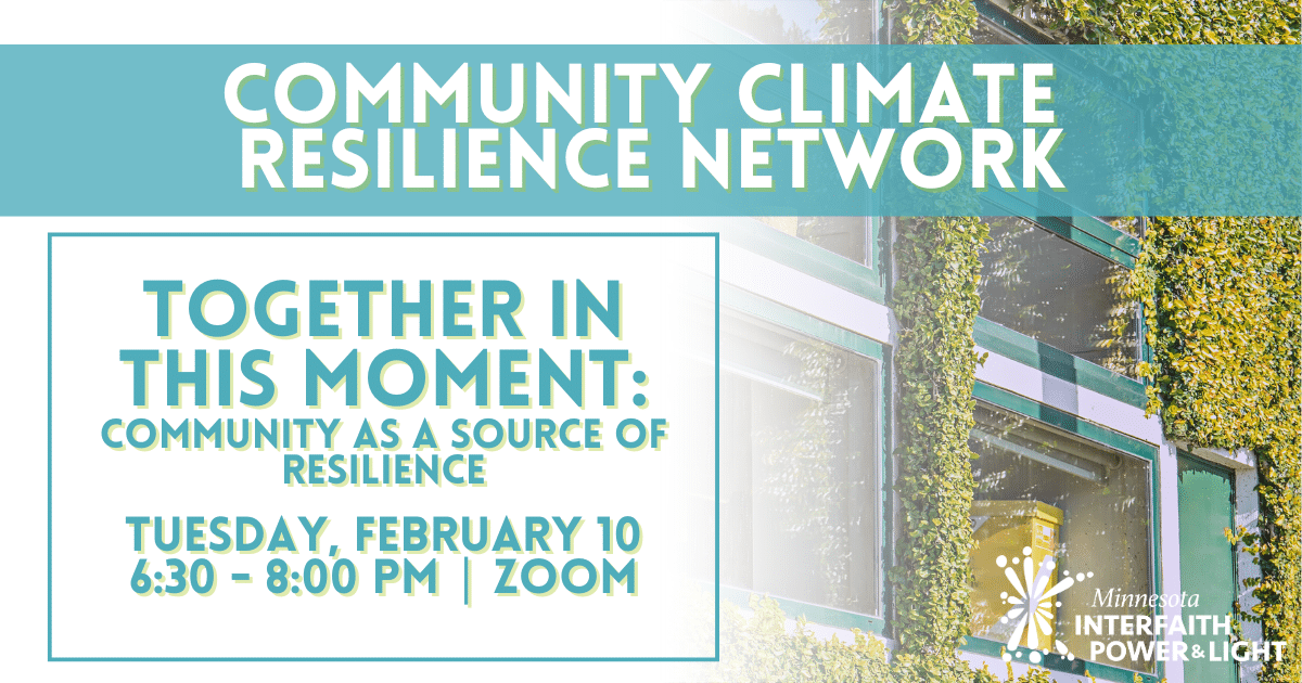 ZoomOur Minnesota communities are already feeling the impacts of climate change, from widespread drought to bigger and more dangerous storms. Our neighbors are going to need support in building the relationships, infrastructure, and support to prevent and adapt to the realities of climate disruption. Minnesota’s communities of faith, and community organizations are uniquely poised to…