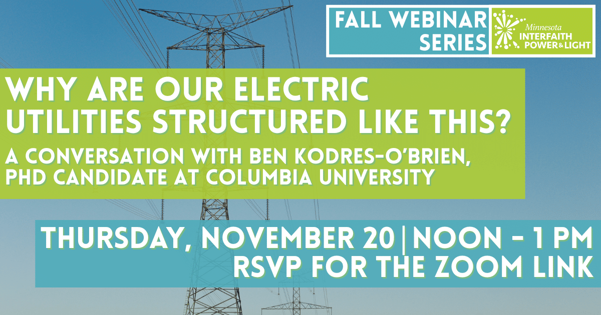 First Lutheran Church 1655 18th Ave E South McKay, Alexandria, United StatesJoin Minnesota Interfaith Power and Light and First Lutheran Church as we explore the role of communities of faith, conscience, or spiritual practice in a growing local resilience network. MNIPL will share about our Community Climate Resilience Network, a statewide network of resilience hubs, and we will have a conversation about the barriers and bridges…